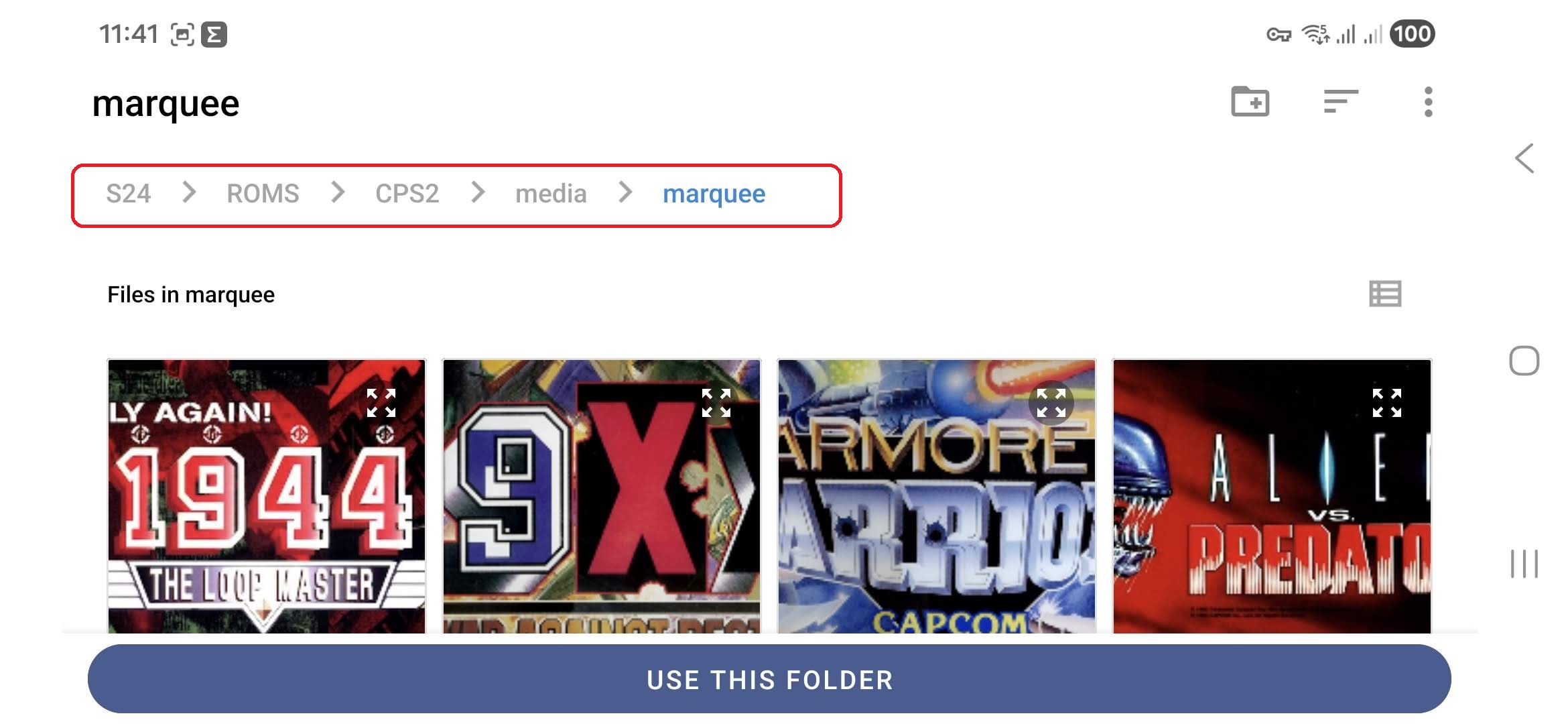 Scroll to the bottom, tap “import .DAT file” and browse for the DAT file for that system, in this example CPSII. Tap “Use this folder”.