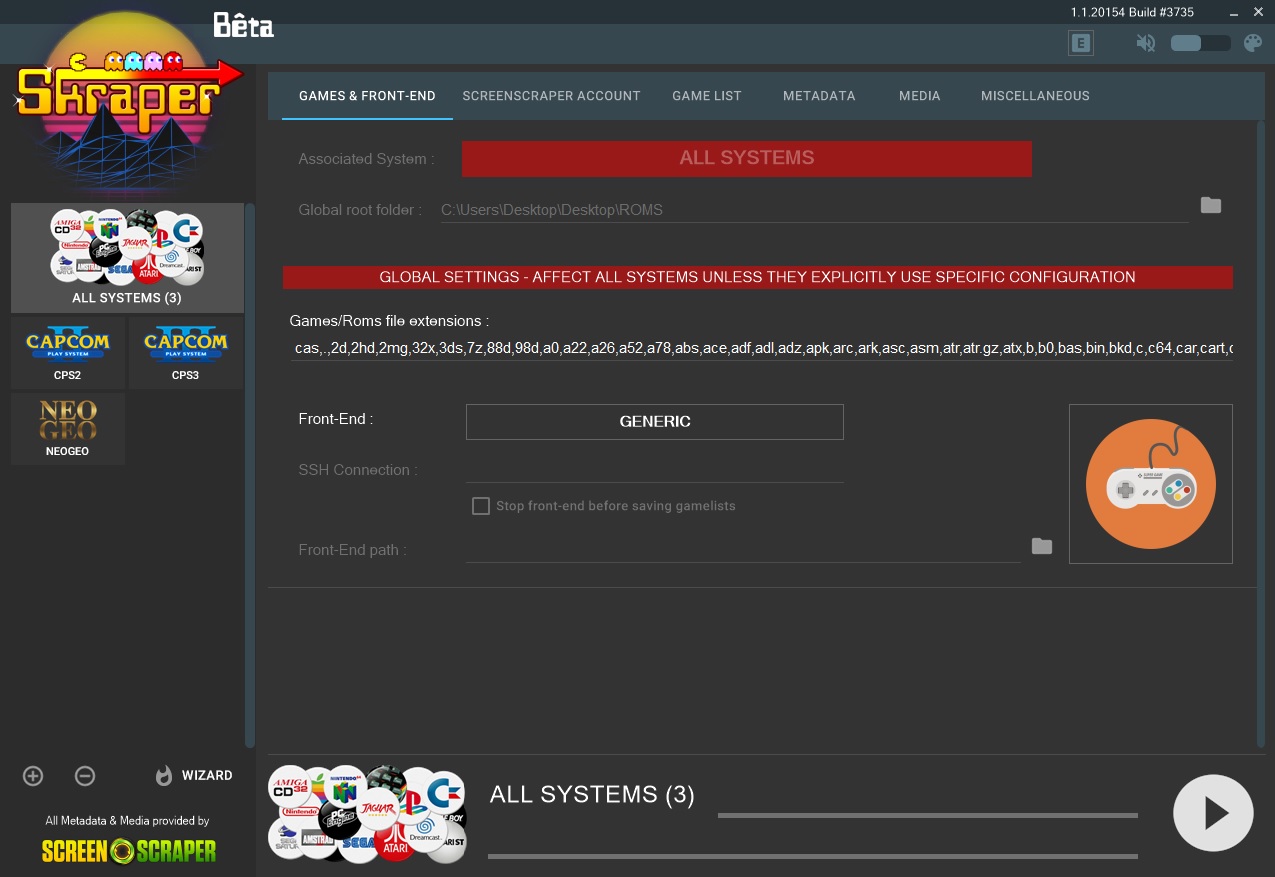 While SkraperUI gets its bearings together, minimize it and get your entire ROMS folder from your handheld and copy it to your PC. Just make sure your Roms are actually working and fully sorted out before you scrape them. Here is an example, I have a ROMS folder that has subfolders like CPS1, CPS2, CPS3, Neo-Geo etc, and we are going to scrap the content in each folder.
