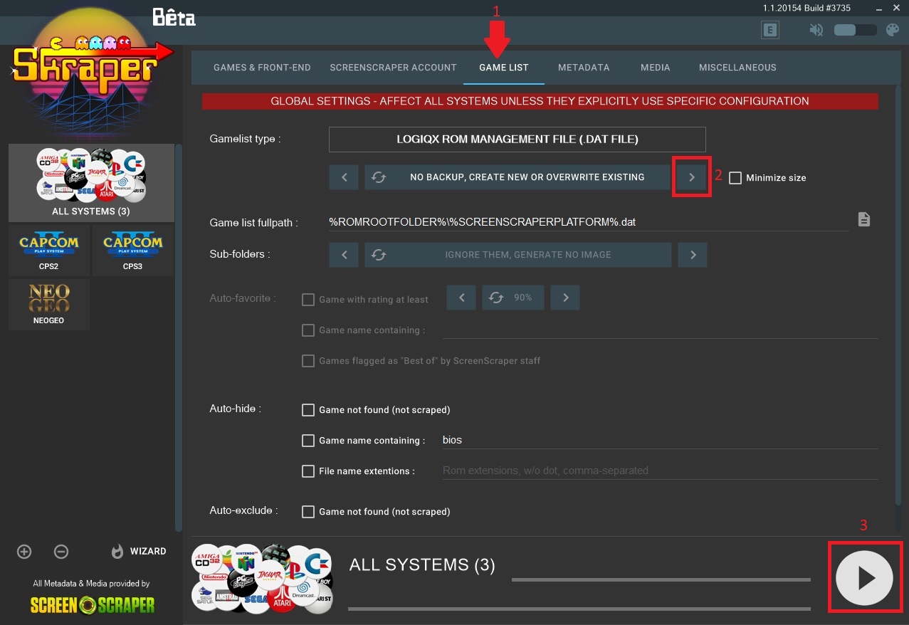 Now click on the “Game List” tab and make sure it says “No Backup, Create New or Overwrite Existing” in the first box. Make sure everything else is as shown on the screenshot below.