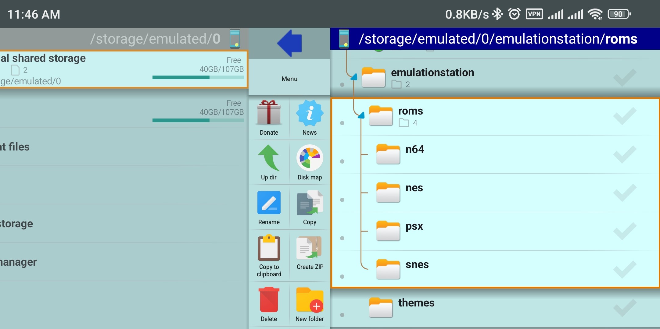 Once EmulationStation is installed, you’ll need to create the correct folder structure, use one of the aforementioned explorer apps: