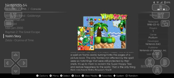 Which means, this system will attempt to call RetroArch and use the core to launch the game. So, in order to work, you will need to start RetroArch and install the mupen64plus_next_gles3_libretro_android.so manually, or you will be greeted by black screen. mupen64plus_next_gles3_libretro_android.so
