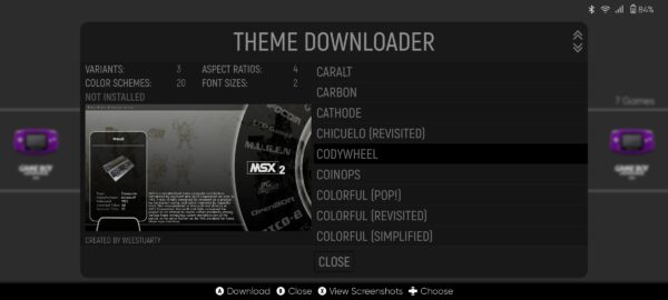 The app has built-in theme support and that’s a big part of why people like EmulationStation. Once you’ve set everything up correctly, you can feast your eyes on a variety of themes all downloadable directly from within the app. There’s everything from retro-style pixelated menus to modern eye candy like PS2 and Switch inspired layouts.