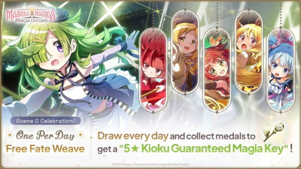 Aniplex has announced that Puella Magi Madoka Magica: Scene 0 Part I will go live in Magia Exedra on Friday, May 30th at 12:00. This is the first part of a limited-time event series commemorating the 10th anniversary of the franchise. Players who complete the required story quest can join the event and collect exclusive rewards.