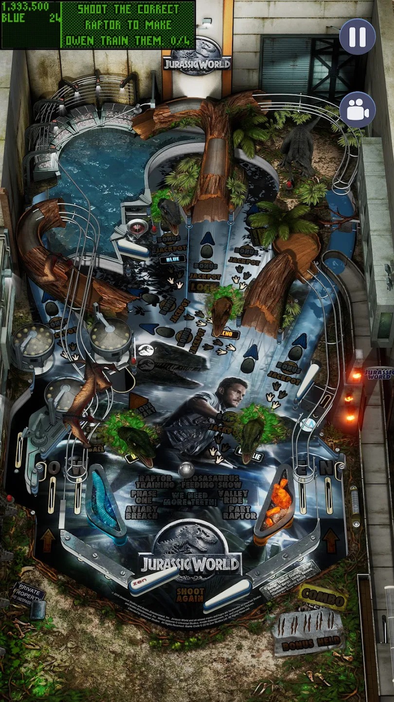 - Jurassic World Pinball: Train Raptors, view the Mosasaurus, and survive Indominus Rex.