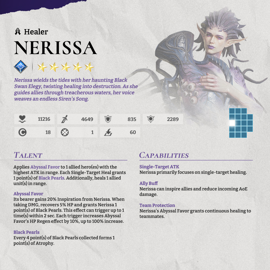 A new hero also joins the roster this month Nerissa. This healer uses her Black Swan Elegy to deliver healing that doubles as destruction. Add her to your team for major support advantages.
